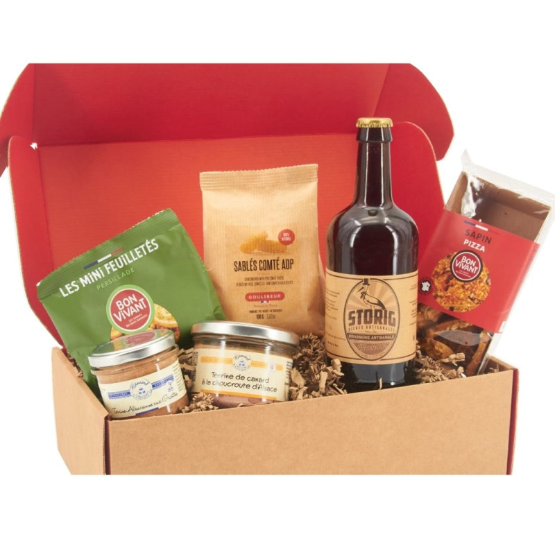 Un coffret gourmand qui sent bon la convivialité et les saveurs du terroir. Conçu pour les amateurs de produits artisanaux et de bons moments à partager, il réunit mets salés, biscuits et bière locale pour un apéritif festif et authentique.