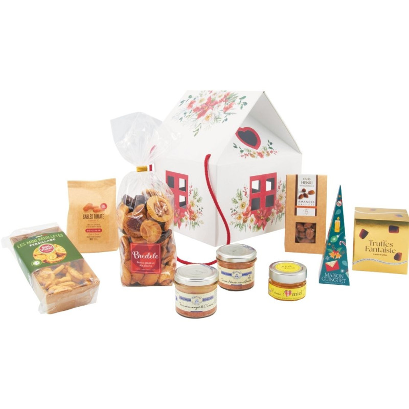 Un coffret d’exception au design unique, en forme de maison de campagne enneigée, qui réunit des spécialités sucrées et salées pour célébrer les fêtes avec authenticité. Ce cadeau original séduira autant par son contenant décoratif que par la qualité de ses produits.